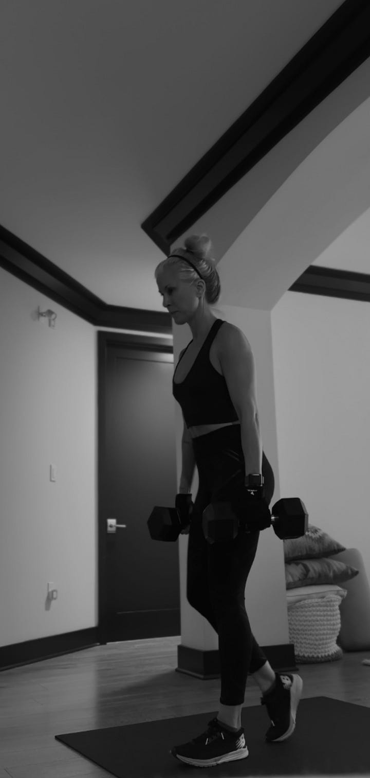 A quick word on mobility and aging. WE MUST DO IT. We have to take the time to warm up, cool down, and stretch. What is the point of getting strong if we can’t stand up from the couch without moaning because our joints are sore and stiff? Joint pain is no joke in perimenopause! This is my Achilles heel, so I totally understand if you skip it as well. I really have to turn off my brain when I do this, otherwise I am constantly thinking about all the other things I could and should be doing with my time.
