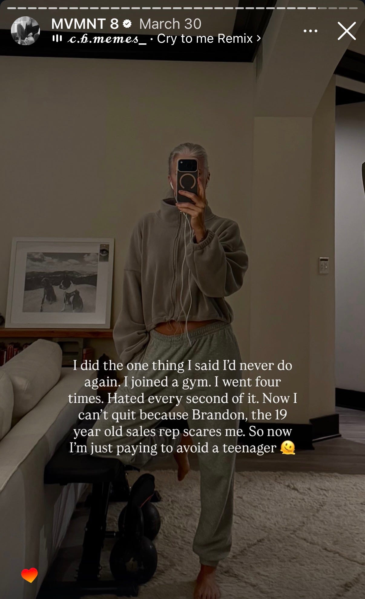 Whether you get all the things or none at all, the point of this is that we need to take care of ourselves in the way that works best for our individual needs. So if you are someone who craves community and loves leaving home for a workout class or to meet up with a group, do that. But do something. Moving our bodies will move our energy and just make life feel a little more doable.