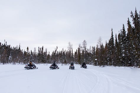 While it is not easy to get to, but totally worth it. First, you must travel to Yellowknife, in the Northwest Territories of Canada (typically 2-3 flights). Then take a bush plane (from another location) that drops you off on a frozen lake in the middle of nowhere, to even get to Blachford Lake Lodge.