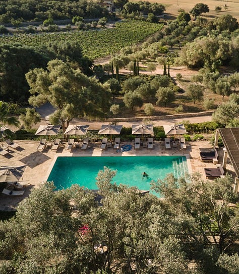 My choice, Finca Serena. Hits the romantic, sexy, wellness/spa oriented, definite invitation to relax and chill, Mediterranean eats, olive trees, and I love that countryside beauty with a sick pool situation.