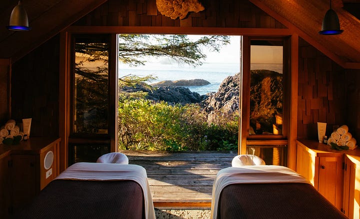 Hits the romantic, sexy, spa-oriented location, near the water, with culinary experiences (awarded two Michelin Keys), in addition to a variety of adventures via the hotel or private businesses in British Columbia, offering anything from whale watching, hiking, storm chasing, wildlife safaris, nature tours, to heli-hikes.