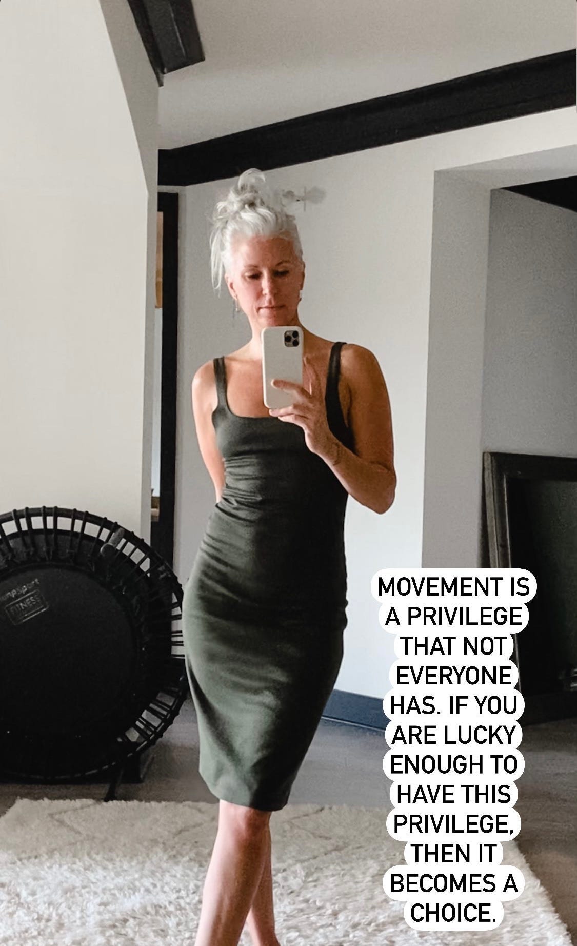 This is NOT about killing yourself every day. It’s about getting into the practice of choosing intentional movement. Carving out the time and sticking to it. It’s not about how hard or how long you can go. You can literally just go in the backyard and walk in circles for 20 minutes. Just get in the practice of setting the time for yourself. That’s the point. Keep your word - feel good.