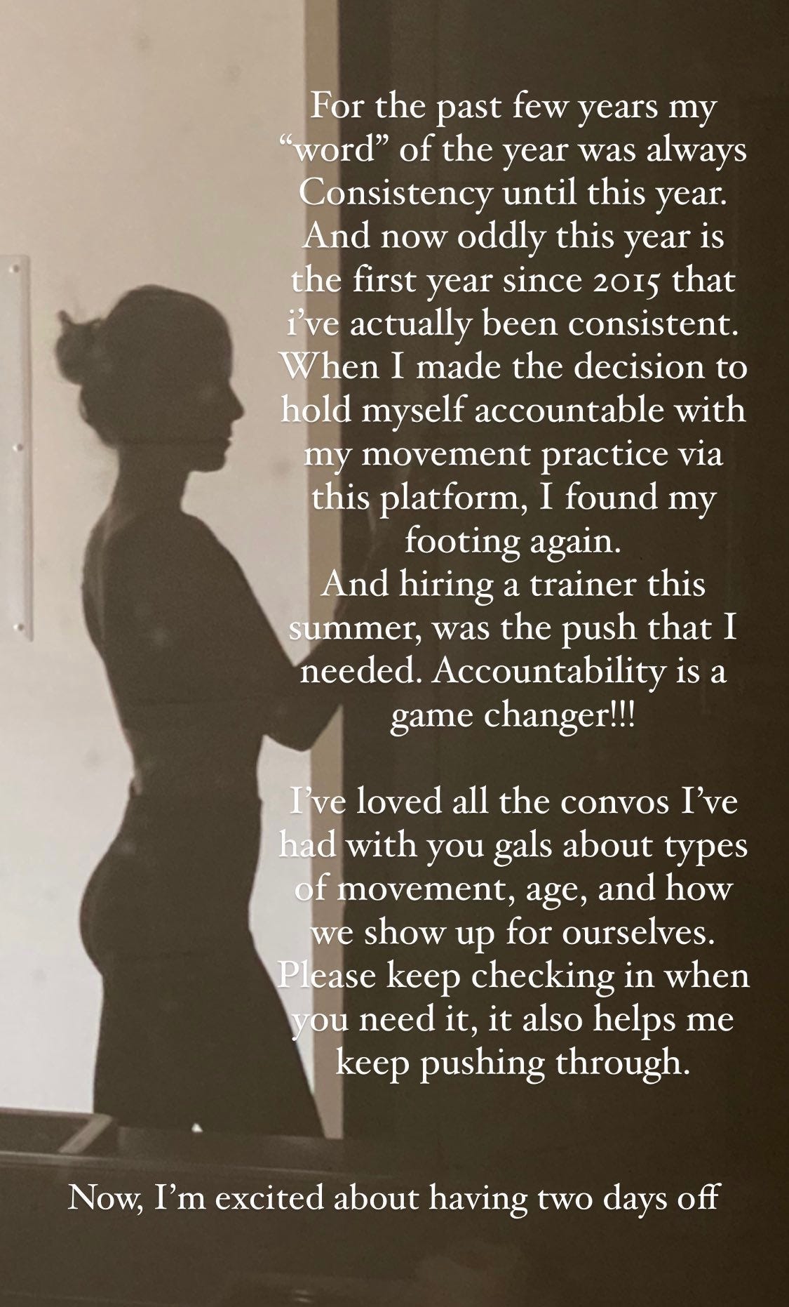 Today I did my 199th intentional movement practice, and over the past 10.5 months, I have heard from so many people about how they too have started a daily practice/daily honoring of themselves after being inspired by how I was sharing my commitment to my own practice. These messages helped me too.